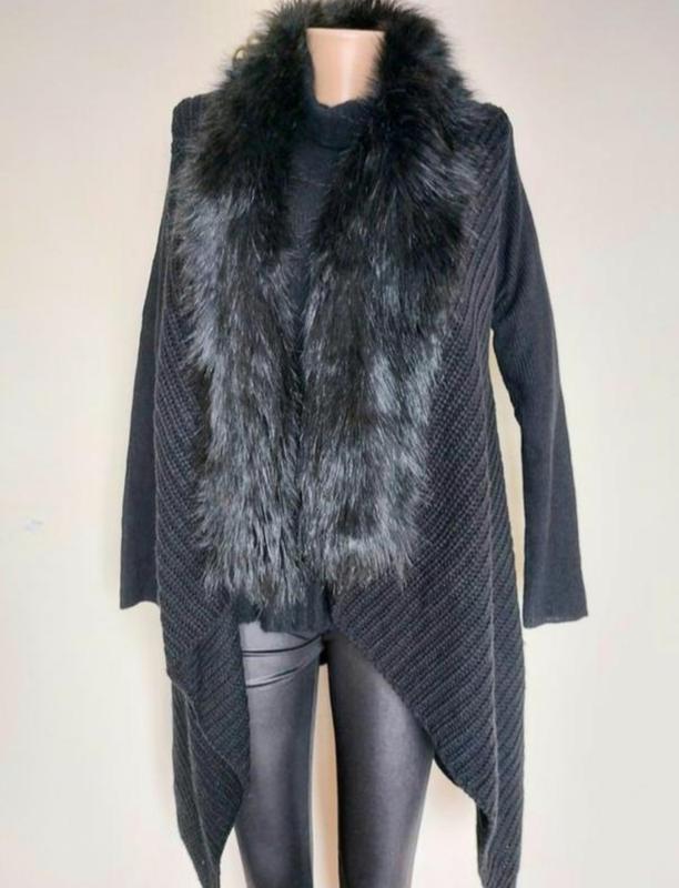 🛑"Беспечная оплата" только по Новой почте. Вся другая информация в разделе "ПРО МЕНЕ"🛑 красивый вязаный кардиган от Amisu. размер S, и на больший замеры примерные ( трудно измерить в совершенстве) длина спереди - 100- 103см. ззаду 76см. рукав 65см. плечи - +- 40см. пог -+- 45- 50см. хутро штучне , состояние идеальное,без следов носки