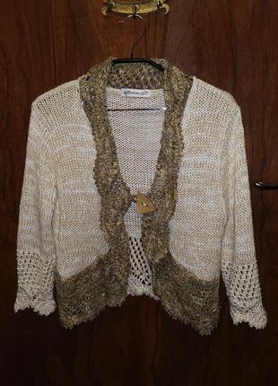 В'язана кофта в стилі бохо-шик. Підійде на S/M (розмір не вказаний). В ідеальному стані, без дефектів. Напівобхват грудей 47 см. Довжина по спинці 48 см. --- 100% передплата на картку. Або оформлюйте безпечну оплату. Післяплатою не відсилаю. --- Увага! Перед офомленням замовлення напишіть мені повідомлення. Я можу бути у відрядженні, а за відхилені замовлення знижується рейтинг. Відправка в кінці робочого дня (7-8 вечора). Відповідно номер посилки ви отримаєте не раніше.