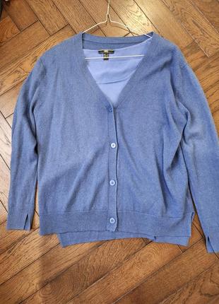 Нереальної якості кашеміровий кардиган гарно сяде на м-s , на дотик як пух, Я бірку зрізала, але це був або cos, або uniclo колір однотонний, не меланж, бо на фото чомусь виглядає ніби меланж.