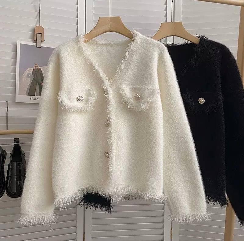 Затишний пухнастий кардиган з гарними акцетними гудзиками та бахромою❤️ Забезпечить вам комфорт та тепло❄️ Мод 2539 Колір: білий, чорний Розмір: універсал с/л Тканина: бавовна/кашемір