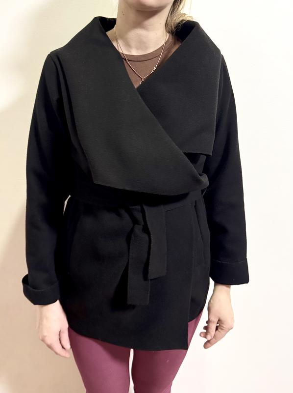 Легкий чорний кардиган. Розмір в ширину можна регулювати поясом будь-як. На запах.