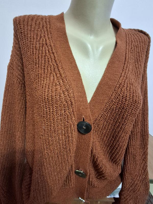 кардиган кирпичный цвет на пуговицах, длина по спине- 72, пог-60, рукав-55