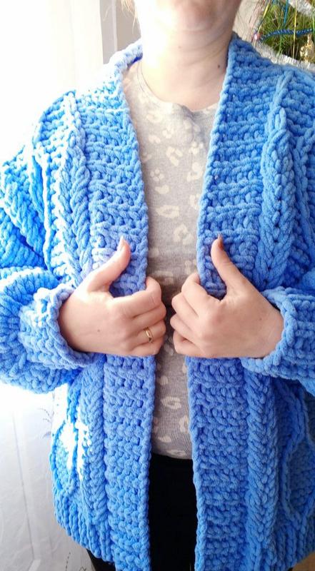 Кардиган Puffy Cloud блакитного кольору з плюшевої пряжі за МК sun.wallet. Ручна робота. У наявності Розмір М. Заміри: Довжина - 70 см Рукав - 51 см ПО по талії - 56 см Може бути зв'язаний на замовлення - колір на Ваш вибір, розмір S, M, L. Чекати 7-10днів.