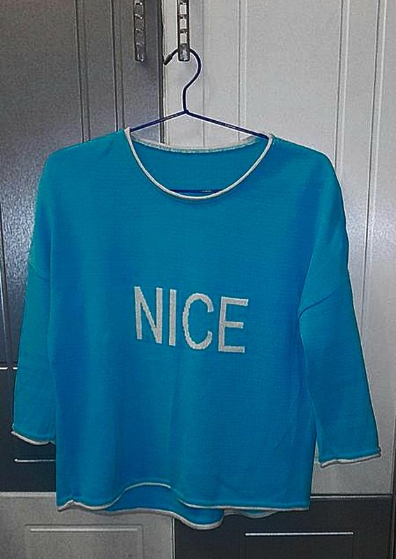 розмір по бірці 44-46 довжина від плеча 60 см довжина рукава від горловини 57 см (три чверті) ширина 53 см (тягнеться 73 см)