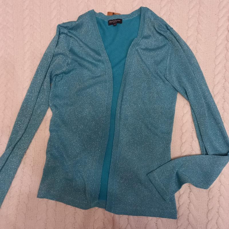 Кардинал блакитного кольору з люриксовою ниткою.В гарному стані.Без застібок.