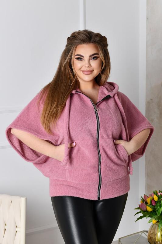Кардиган НОВИНКА💥💥💥 В НАЯВНОСТІ✅✅✅ Код 3636 Тканина: Альпака (люксова якість). Колір: рожевий, червоний, темно-синій, блакитний, хакі. Розміри: 52-54, 56-58, 60-62, 64-66. Довжина кардигану: 70, 71, 72, 73 см. Довжина рукава: 42, 44, 46, 48 см. Заміри готового виробу: 52-54 ОГ 114 ОТ 114 ОС 114 56-58 ОГ 122 ОТ 122 ОС 122 60-62 ОГ 130 ОТ 130 ОС 130 64-66 ОГ 138 ОТ 138 ОС 138 Неймовірно стильний кардиган із м’якого в‘язаного полотна ( розтяжність середня). В куліску капюшону протягнуто об‘ємний шнурок із основного матеріалу. Попереду оброблена кишеня «кенгуру». Рукав оригінальної вкороченої форми. Застібається на блискавку.