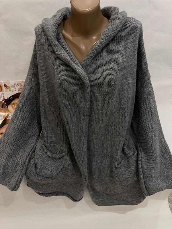 Довжина 72, Пог 64, Пот 61, пос 64, Рукав 49, від капюшона 74, плечі спущені 65, пройма 30, біцепс 24, вовна 50%, альпака 35%, 35%віскоза 10%, поліамід 5%