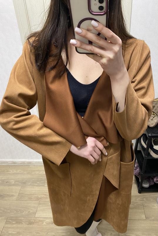 Кардиган пальто, з екозамші, ношу розмір М, але може підійти і до ХL. Бренд незнаю, але є бірка made in Italy