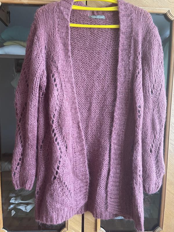 Теплий й мягенький кардиган. Колір не насичений бургунді. Довжина 85 Рукав 64 Плечі 45 Груди 50+ Читайте опис про мене 🫶🏼