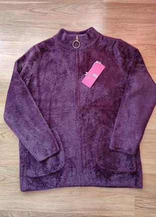 Нова кофта на замку. Розмір по бірці L-XL. Склад: 50% котон, 35% акрил, 5% лайкра, 10% еластан. Заміри: довжина 68см, ширина 56см, рукав 58.5см. Причина продажу - подарували і не підійшов розмір. Привезена з Польщі.