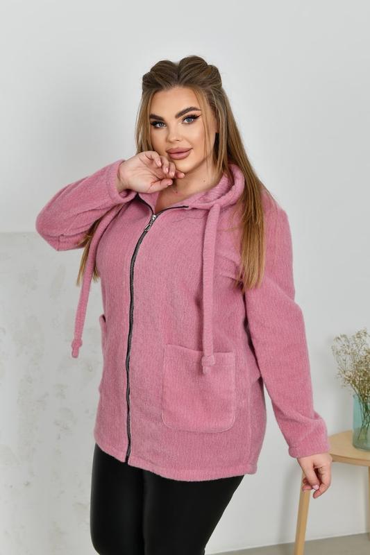 НОВИНКА💥💥💥 В НАЯВНОСТІ✅✅✅ Кофта Код 3606 Тканина: Альпака (Якість люкс). Кольори: рожевий, червоний, синій, блакитний, зелений, хакі. Розміри: 48-50, 52-54, 56-58, 60-62, 64-66. Довжина кофты: 74, 76, 78, 80, 82 см. Довжина рукава: 59, 60, 60, 61, 62 см. Обхват рукава: 39, 40, 41, 43, 45 см. Заміри готового виробу: 48-50 ОГ 112 ОТ 112 ОС 116 52-54 ОГ 120 ОТ 120 ОС 124 56-58 ОГ 128 ОТ 128 ОС 132 60-62 ОГ 136 ОТ 136 ОС 140 64-66 ОГ 144 ОТ 144 ОС 148 Стильна, тепла та затишна кофта прямого силуету з м‘якого в‘язаного полотна (розтяжність середня). Кофта з капюшоном, в куліску якого протягнуто шнурок з основної тканини. Застібається на блискавку. Рукави втачні, без манжетів. Попереду оброблені накладні кишені.