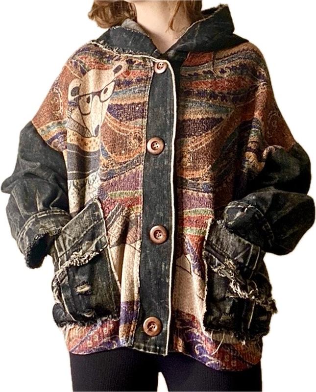 Оверсайз кардиган у бохо стилі з яскравим гобеленовим візерунком та джинсовими вставками. Розмір універсальний, всі затертості декоративні, підійде як для теплої весни, так і холодних вечорів літом. Зручний, з капюшоном і глибокими кишенями. Взагалі не носився, стан ідеальний, дефектів немає.
