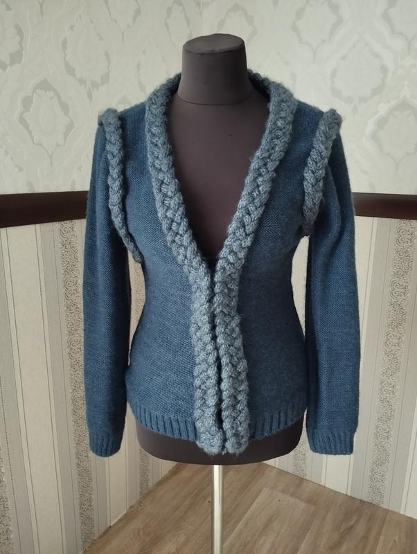 Теплая кофта, в составе есть шерсть. Застегивается на крючки. Состояние хорошее, замеры по запросу.