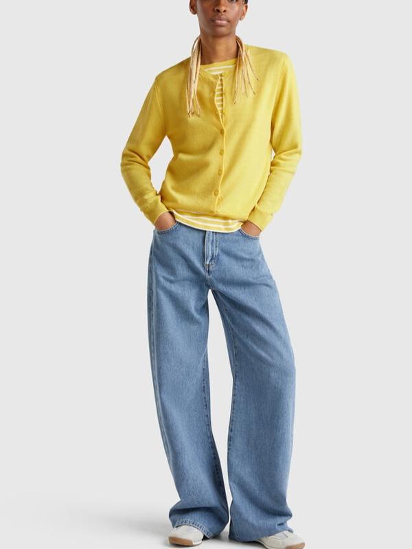 Кардиган Benetton тонкая шерсть,цвет горчичный ПОг 45 длина 58 Рукав 62