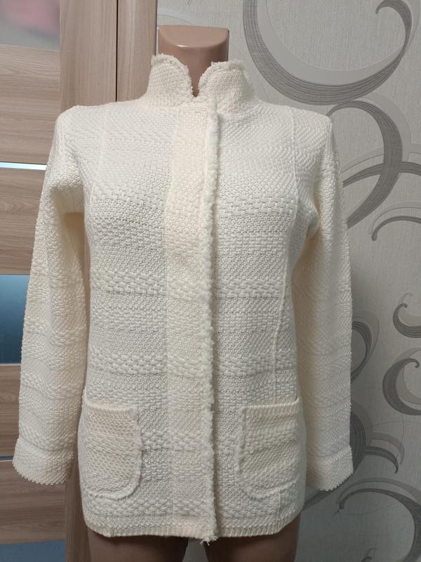 Кардиган в идеальном состоянии. Размер S M. Ткань 100%шерсть, вязкая плотная. Цвет шампань. ПОГ 47см+тянется немного. Длина 63см Длина рукава 57см Плечи37см