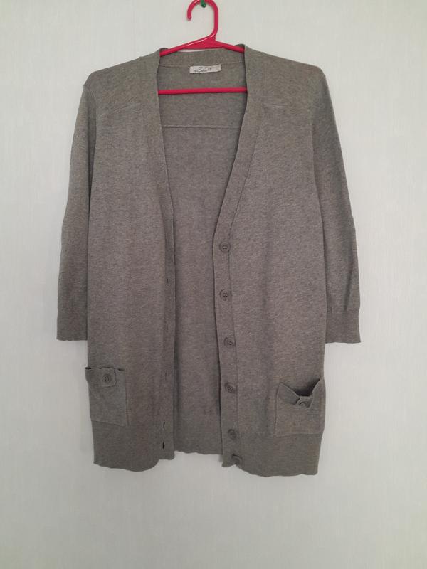 Сірий кардиган в ідеальному стані. Для комфортного і стильного вигляду. Підійде на розмір М-Л. Рукав 3\4.Довжина 75см. Пог-52см Продаю,бо замалий. Нова ,укрпошта після оплати