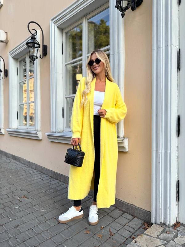 Обʼємний подовжений кардиган💜 Мʼякий, теплий і стильний — ідеальний варіант на осінь 🍂 Сідає красиво, не колеться, чудово доповнює будь-який образ. Виробник: Туреччина Розмір: універсальний Колір: молочний,чорний, жолтий Ціна: 2150 грн Заміри: Довжина: 110см Довжина рукава від шиї: 66см Обьем грудей до 128см №2476