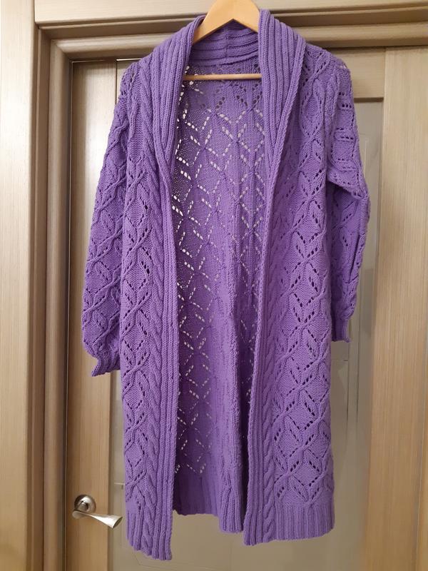 Очень красивый лиловый кардиган hand made. Подойдет на М и L
