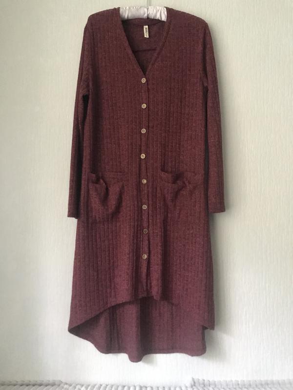 Подовжена кофтинка, кардиган М‘якенька, приємна до тіла Вільний фасон Пог-53 Пот-52 Поб-60 Довжина -92/112 Рукав-64