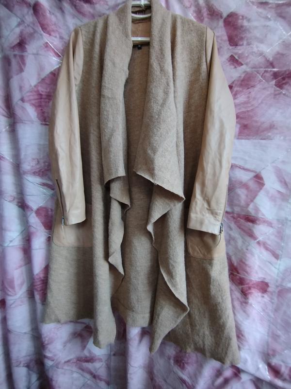 СТИЛЬНИЙ КАРДИГАН ШЕРСТЬ+НАТУРАЛЬНА ШКІРА ПОГ 55 ПОС 55 Д 101 ПЛЕЧІ 38 РУКАВ 61