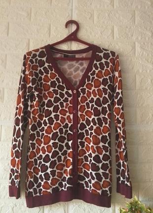 Новый кардиган с трендовым леопардовым принтом в бордово коричневых цветах,ная пуговицах