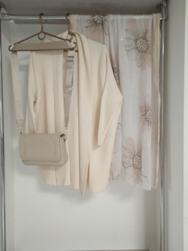Стильный однотонный кардиган с длинным рукавом приятного молочного цвета. Теплый и комфортный. Приятный на ощупь. Фактурная машинная вязка. Нить средней толщины с легким ворсом. Ложится свободно. Фасон прямой. Без застежки. Плечи спущены. Стильно смотрится с шарфом в тон в комплекте (шарф может быть заменен, но в цвете). Есть размеры. 56р на пог-60-62 54р на пог-58-60 52р на пог-56-58 Длина-80см