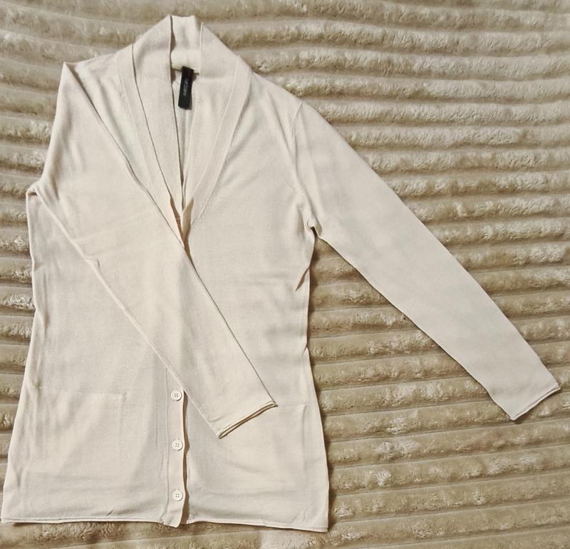 Новий, купляла в аутлеті за 6000гр,бірка складу зрізана, склад і ціна ідентичного стану б.в. на скріні.Орієнтуйтесь по замірах, якість неймовірна,ціну поставила символічну.Колір вершковий.