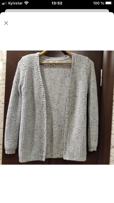Фото додам! Виглядає в реалі набагато краще! Вид і стан нової Одягалась пару разів Дівчата виїхали, речі розпродуєм Тепла, без застібок, Присутня рідко срібляста нитка, що придає ошатності нарядності Якість хороша, вид гарний, На дотик вау! Супер! Довжина 61 Рукав 54 НОГ 41 в‘язка тягнеться ++добре при потребі і до 50х2 і на розмір М теж буде добре Можна легко пришити посередині один ґудзик і навісну петельку для застібки, або цей ґудзик зсередини пришити непомітним щоб застібати Кофта класна як нова По складу схожий кашемір, вовна+ангора, бо дівчата носили тільки натуральні речі. Дівчата виїхали, речі розпродуєм, цей кардиган купляли з Чехії