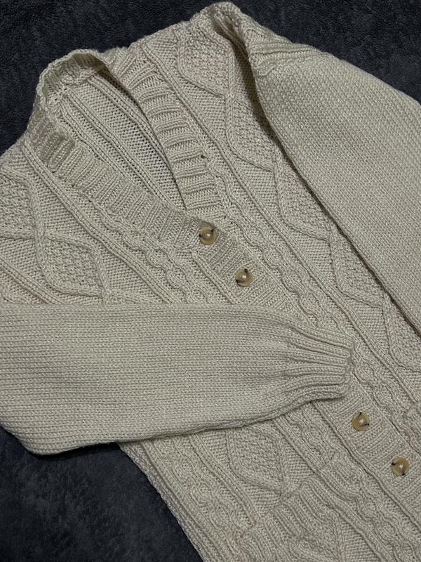 Вітаю, кардиган гарної вʼязки, розмір ХС, невелика С. Гарно підійде під уги та легінси😉🔥