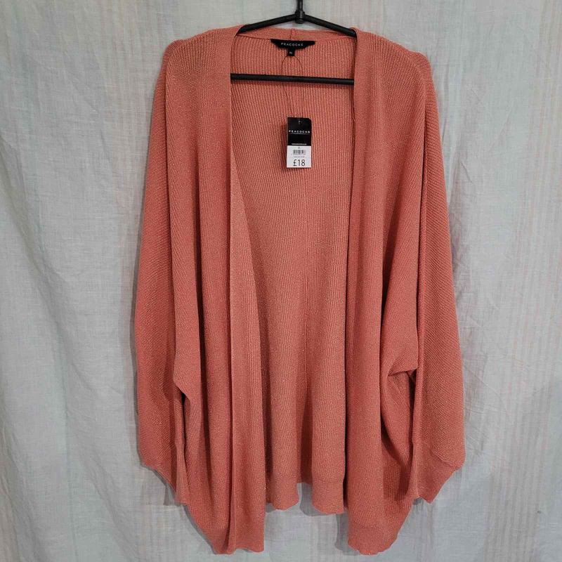 Нарядный кардиган, светлый коралл с золотым блеском. Ог 150+, Об 140+, рукав от ворота 82.