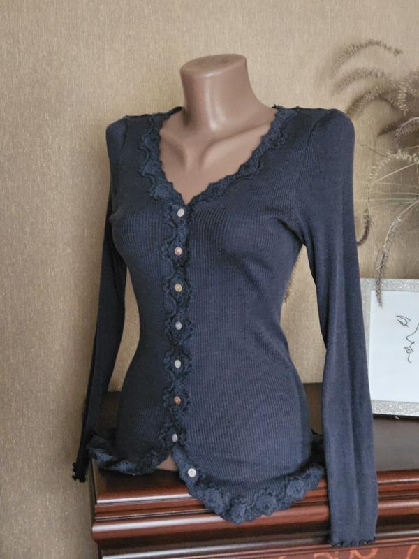 Жіночний кардиган з мереживом і перлинними ґудзиками данського бренду Rosemunde. 70% шовк 30% бавовна. Дуже добре тягнеться.