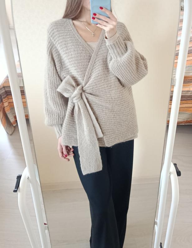 Продаж тільки при повній оплаті на карту! Теплий кардиган з вовни та мохеру COS. Стан чудовий. Колір пильної троянди. Щільний, не колючий. Тягнеться. Трошки спущене плече. Із середини застібається на гудзик. Розмір 36-38. 49% вовна, 30% мохер, 21% поліамід Довжина 63см Рукав 54см Плечі 46см Пог 54см Поб 54см