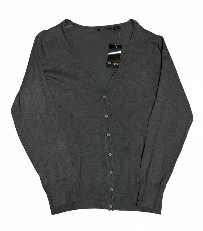 Стильний кардиган з V-подібною горловиною, має вільнішу посадку та комфортно сідає по фігурі. Універсальний темно-сірий колір легко поєднується з базовими речами гардеробу. Підійде для повсякденних образів, роботи або навчання. М’який та приємний у носінні. Розмір: S Заміри: • Обхват грудей: 51 см • Обхват талії: 47 см • Довжина виробу: 60 см • Довжина рукава: 58 см
