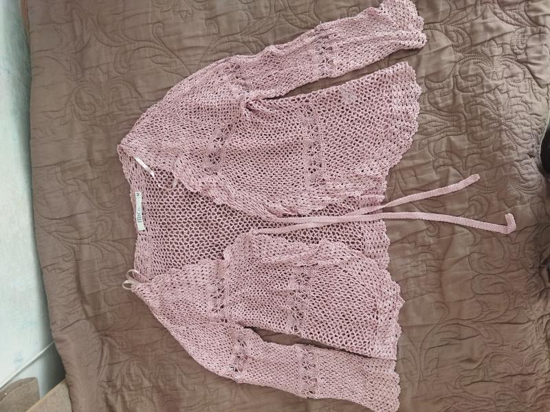 Напівоб'єм грудей: вільний Напівоб'єм талії: вільний Довжина виробу: 42 см Довжина рукава: 39 см Сезон: Весна Літо Матеріал: в'язка Утеплювач: немає Принт: в'язка і бісеринки Наявність дефектів: немає