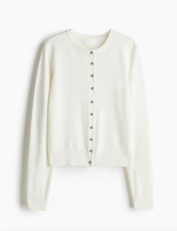 Кардиган від H&M Колір молочний 70% віскоза, 30% поліамід На останньому фото такий самий тільки у кольорі хакі Довжина 50 см НОГ 44 см Рукав 60 см