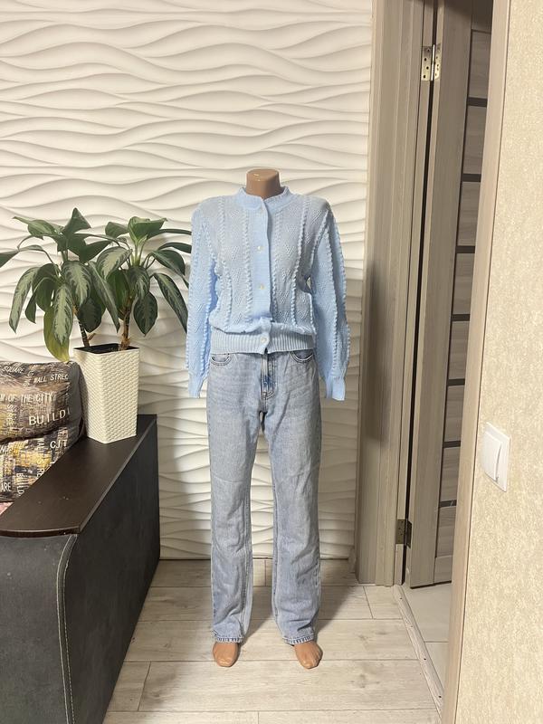 М’яка в’язка з рельєфним візерунком по всій поверхні Класичний круглий виріз горловини Застібається на ґудзики спереду Довгі рукави з акуратними манжетами Низ кофтинки з еластичною резинкою Ніжний пастельний відтінок, дуже освіжає образ Стан нової