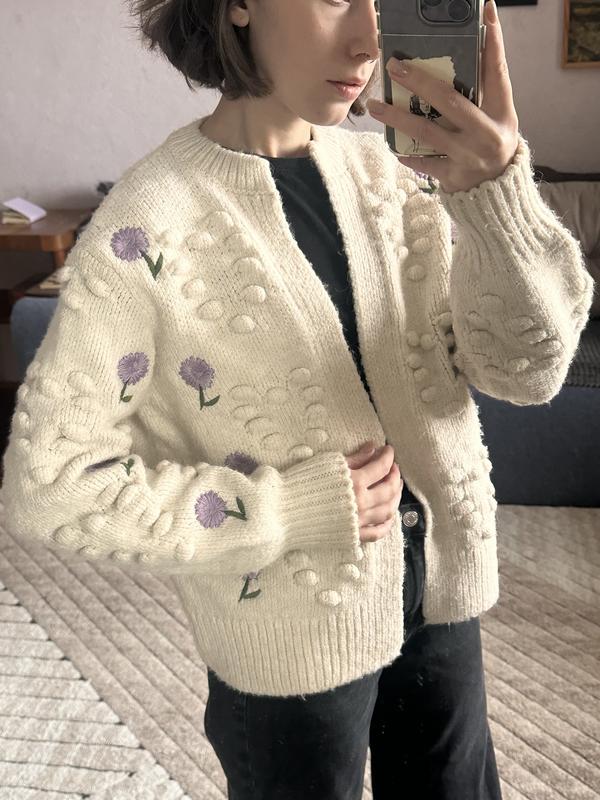 Дуже милий кардиган з квітами. Вдягнений на хс, мені здається, що краще сяде на с