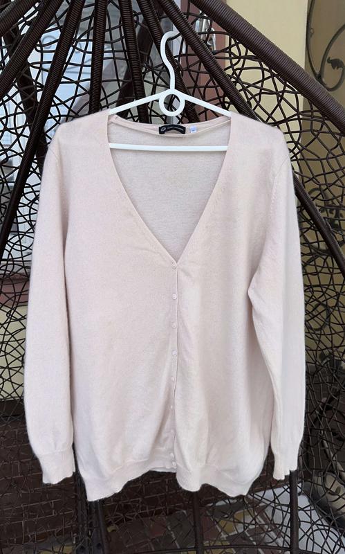 Базовий ніжний кардиган світло персикового кольору. Розмір XL, 100% кашемір. Заміри: Плечі піб 42 см ПОГ 58 см Рукав від плеча 62 см Довжина 70 см