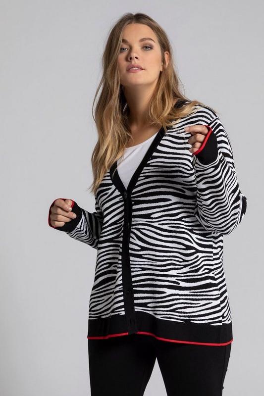 🦓 Стильний подовжений кардиган з принтом "Зебра" від Selection by Ulla Popken Пропоную вашій увазі ефектний та якісний кардиган, який стане головним акцентом вашого гардероба. Модель від німецького бренду Ulla Popken (лінійка Selection), що славиться своєю якістю та ідеальною посадкою. ✨ Основні характеристики: • Дизайн: Класичний анімалістичний принт "зебра" у чорно-білих тонах. Особлива "родзинка" — тонка червона смужка по краю манжетів та низу виробу, що робить образ завершеним. • Фасон: V-подібний виріз, застібається на ґудзики. Подовжений крій, що гарно прикриває стегна. • Матеріал: Якісний щільний трикотаж (машинна в’язка), приємний до тіла, гарно тримає форму. • Стан: Ідеальний / як новий (видно за станом бірок та манжетів). 📏 Розмір: • На бірці: DE/EU 42/44 (L-XL), USA 12/14. • Завдяки фасону може підійти як на L (вільніше), так і на XL-XXL. 💡 З чим носити? Кардиган ідеально виглядає з чорними штанами або джинсами та базовим топом/футболкою. Червоний акцент дозволяє додати в образ червону помаду або аксесуари в тон. Додаткові заміри надам за запитом. Відправляю будь-якою зручною поштою!Всі бірки що ж на фото, фото на собі не роблю.