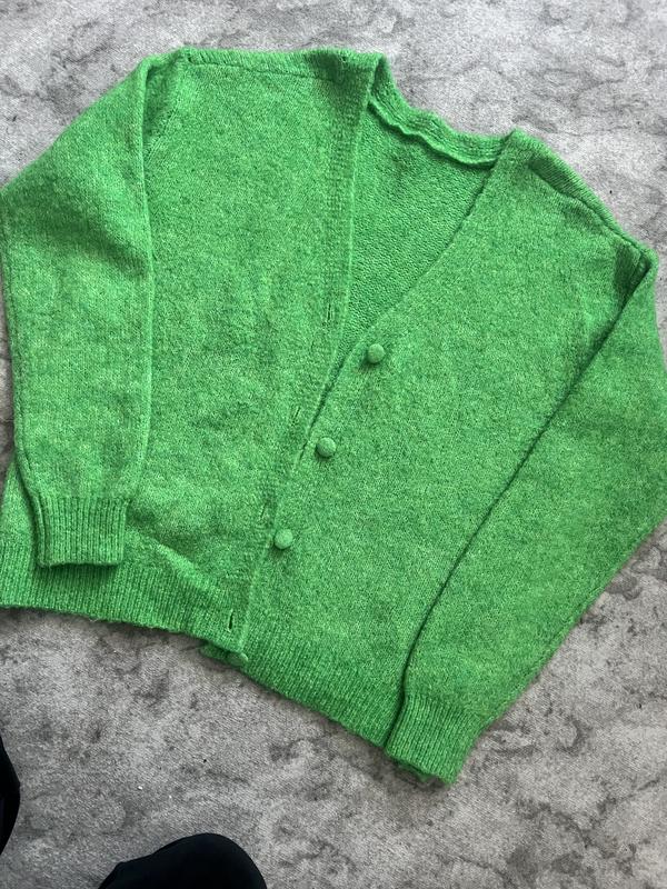 Красивий, насиченого кольору кардиган. Теплий! Дефектів нема, але я носила його не знімаючи, тому вказала стан)