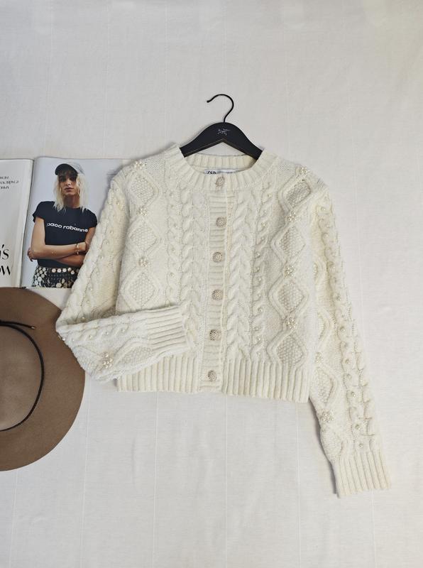 🌿кардиган Zara з красивої в'язки з перлинками Розмір:М Заміри:ПОГ 55 см, довжина 47 см, рукав 60 см