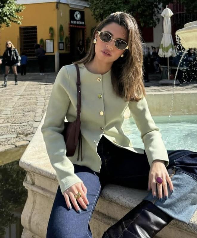 🌿зелений кардиган Zara з золотими гудзиками, тканина цупка в'язка, гарно тримає форму Розмір:L Заміри:ПОГ 46 см, довжина 57 см, рукав 60 см