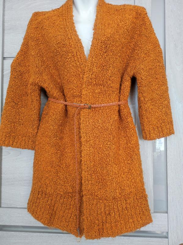 Теплий кардиган Тедді Tu у стані нової речі ☝️+плюс у подарунок поясок який ідеально ☝️ підходитьЗамір рукав спущений довжина від горловини 61 см (3четвертний) пог-52см, довжина по спинці 79 см тканина добре тягнеться, річ красива☝️, дуже красивий колір