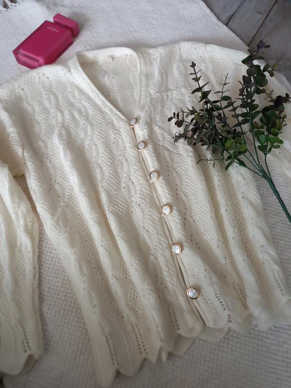 Легка кофтинка-кардиган молочного кольору .Вінтаж Замір груди та талія 100 рукав50 довжина 55-57