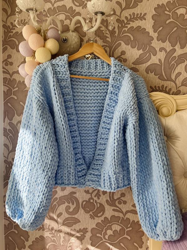 Такий ніжний плюшевий вʼязаний кардиган ручної роботи, ніби хмаринка Розмір єдиний, підійде на xs-m Якщо потрібні заміри та додаткові фото пишіть в пп На замовлення можна інший колір зробити)