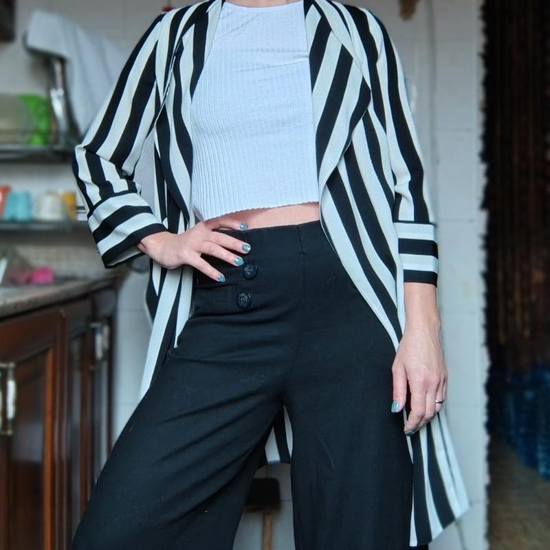 Довжина 88 см Об'єм грудей 100 см Плечі 35 см Рукав 49 см Вдягнуто на модель з параметрами: зріст 164 см груди 90 см талія 74 см стегна 96 см