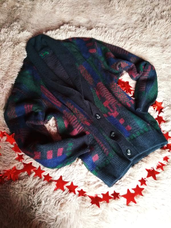 Теплий об'ємний кардиган на гудзиках, актуальна модель, класне поєднання кольорів.