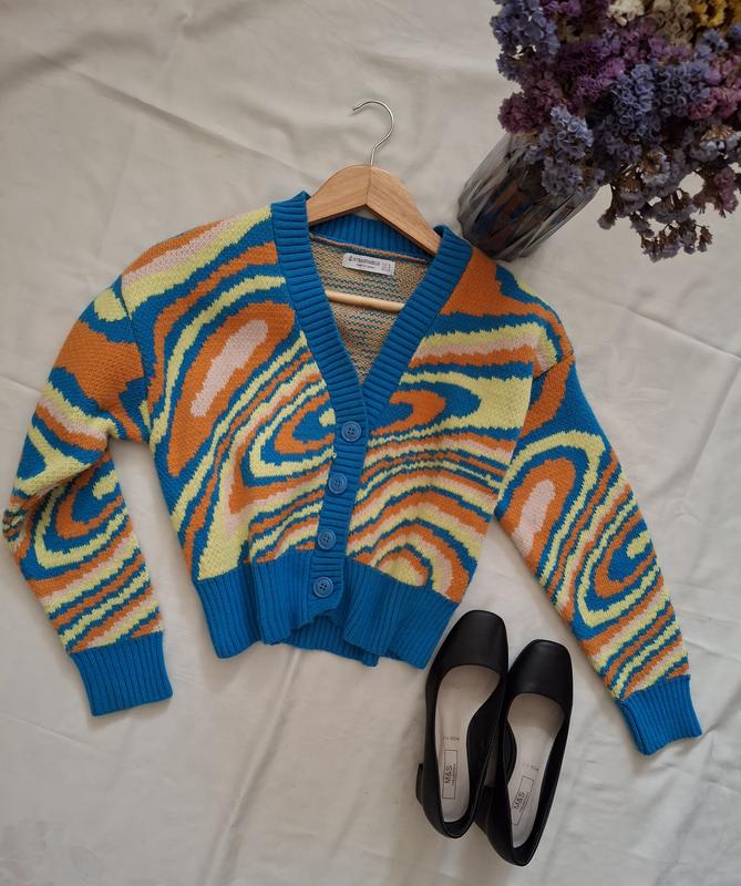Гарний різнобарвний в'язаний кардиган