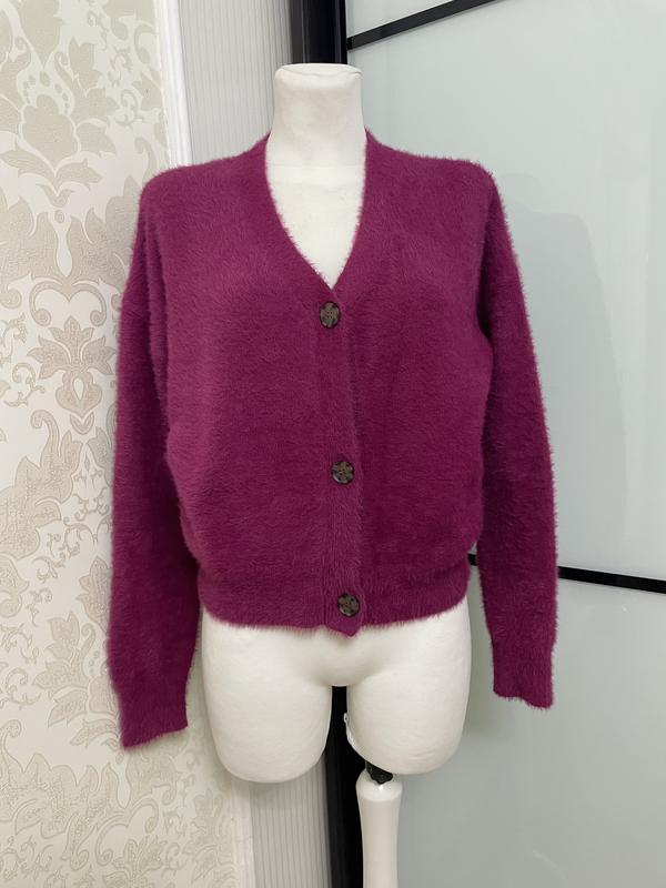 Затишний, пухкий кардиган відтінку • фуксії в стані нового. Вільна модель Бірка зі складом зрізана. p. M ПОгрудей 55 Рукав від горловини 75 Довжина 53