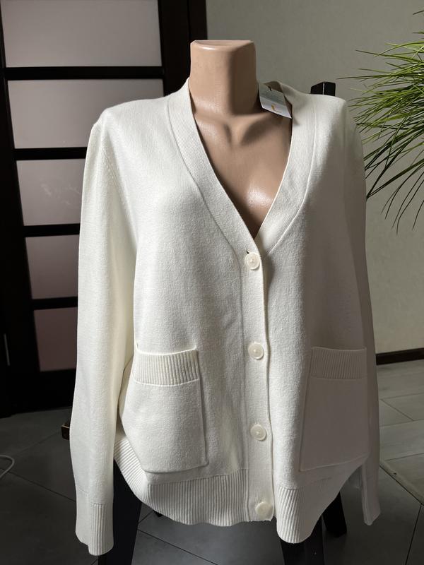 Новий кардиган, кофта на ґудзиках. Довжина 70 см, обхват грудей 120 см. Колір молочний